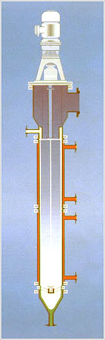 一、概述 薄膜蒸發(fā)器是通過旋轉(zhuǎn)刮膜器強制成膜,并高速流動,熱傳遞效率高,停留時間短(約10~50秒),可在真空條件下進(jìn)行降膜蒸發(fā)的一種新型高效蒸發(fā)器。 它由一個或多個帶夾套加熱的圓筒體及筒內(nèi)旋轉(zhuǎn)的刮膜器組成。刮膜器將進(jìn)料連續(xù)地在加熱面刮成厚薄均勻的液膜并向下移動;在此過程中,低沸點的組份被蒸發(fā),而殘留物從蒸發(fā)器底部排出。 二、性能特點 ·真空壓降小: 物料汽化氣體從加熱面送到外置的冷凝器,存在一定的壓差。在一般的蒸發(fā)器中,這種壓力降(Δp)通常是比較高的,有時甚至高得難于接受。而刮板式薄膜蒸發(fā)器有較大的氣體穿越空間,蒸發(fā)器內(nèi)壓力能看成與冷凝器中的壓力幾乎相等,因此,壓力降很小,真空度可達(dá)5mmHg。 ·操作溫度低: 由于上述特性,這使得蒸發(fā)過程可以保持在較高真空度條件下進(jìn)行。由于真空度的提高,與之相應(yīng)的物料沸點迅速降低,因此,操作可以在較低溫度下進(jìn)行,降低了產(chǎn)品的熱分解。 ·受熱時間短: 由于刮板式薄膜蒸發(fā)器的獨特結(jié)構(gòu),刮膜器具有泵送作用,使得物料在蒸發(fā)器內(nèi)的停留時間很短;另,在加熱的蒸發(fā)器上由于薄膜的高速湍流使得產(chǎn)品不會滯留在蒸發(fā)器表面。因此,特別適用于熱敏性物料的蒸發(fā)。 ·蒸發(fā)強度高: 物料沸點的降低,增大了同熱介質(zhì)的溫度差;刮膜器的功能,減小了呈現(xiàn)湍流狀態(tài)的液膜厚度,降低了熱阻。同時,在這過程中抑制物料在加熱面結(jié)壁、結(jié)垢,并伴有良好的熱交換,因此,提高了刮板式薄膜蒸發(fā)器的總傳熱系數(shù)。 ![]() ·操作彈性大: 正是由于刮板式薄膜蒸發(fā)器獨有的性能,使其適宜于處理熱敏性和要求平穩(wěn)蒸發(fā)的、高粘度的及隨濃度提高粘度急劇增加的物料,其蒸發(fā)過程也能平穩(wěn)蒸發(fā)。 它還能成功地應(yīng)用于含固顆粒、結(jié)晶、聚合、結(jié)垢等情況物料的蒸發(fā)和蒸餾。 三、應(yīng)用領(lǐng)域 在熱交換工程中,刮板式薄膜蒸發(fā)器得到廣乏的應(yīng)用。尤其對熱敏性物料(時間短暫)的熱交換,刮膜器有利于熱交換的進(jìn)行,并通過不同的刮膜器設(shè)計,能進(jìn)行復(fù)雜產(chǎn)品的蒸餾。 刮膜蒸發(fā)器已在下述領(lǐng)域用于蒸發(fā)濃縮、脫溶、汽提、反應(yīng)、脫氣、除臭(氣)味等為目的,取得了良好效果: 中、西藥:抗生素,糖液,雷公滕、黃芪等中草藥,甲基咪唑、單腈胺等中間體; 輕工食品:果汁,肉汁,色素,香精,香料,酶制劑、乳酸、木糖、淀粉糖,山梨酸鉀; 油脂日化:卵磷酯,VE,魚肝油,油酸,甘油,脂肪酸,廢潤滑油,烷基多糖苷,醇醚硫酸鹽等; 合成樹脂:聚酰胺樹脂,環(huán)氧樹脂,多聚甲醛,PPS(癸二酸聚丙烯酯),PBT,甲酸丙烯酯; 合成纖維:PTA,DMT,炭素纖維,聚四氫呋喃,聚醚多元醇等; 石油化學(xué):TDI,MDI,三甲基氫醌,三羥甲基丙烷,氫氧化鈉等; 農(nóng)藥生物:乙草胺、丙草胺、毒死蜱、呋喃酚、廣滅靈、等除草劑,殺蟲劑、除莠劑,除螨劑; 廢 水:無機鹽廢水等; 四、工作原理 物料從加熱區(qū)的上方徑向進(jìn)入蒸發(fā)器;經(jīng)布料器分布到蒸發(fā)器加熱壁面,然后,旋轉(zhuǎn)的刮膜器將物料連續(xù)均勻地加熱面上刮成厚薄均勻的液膜,并以螺旋狀向下推進(jìn)。在此過程中,旋轉(zhuǎn)的刮膜器連續(xù)和均勻的液膜產(chǎn)生高速湍流,并阻止液膜在加熱面結(jié)焦、結(jié)垢,從而提高傳總系數(shù)。輕組份被蒸發(fā)形成蒸汽流上升,經(jīng)汽液分離器到達(dá)和蒸發(fā)器直接相連的外置冷凝器;重組份從蒸發(fā)器底部的錐體排出。 一個獨特的布料器不僅僅具有將物料均勻地潑向蒸發(fā)器內(nèi)壁,防止物料濺到蒸發(fā)器內(nèi)部噴入蒸汽流,還具有防止剛進(jìn)入的物料在此處閃蒸,有利于泡沫的消除,物料只能沿著加熱面蒸發(fā)。 在刮膜蒸發(fā)器的上部配有一個依據(jù)物料特性設(shè)計的離心式分離器,將上升蒸汽流中的液滴分離出來并返回布料器。 五、型號、規(guī)格